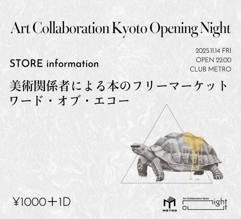 ワード・オブ・エコーは、京都を拠点に、文化芸術にまつわる本をめぐる企画(本のフリーマーケットやブックフェスの開催)を通じて、日常にオルタナティブな視点をもたらす編集・出版・書店活動にスポットを当てること、本を介した対話を生み出すことなどを目的に、2025年に活動を開始しました。京都で編集・出版・企画を手掛ける中本真生(UNGLOBAL STUDIO KYOTO)を中心に、有志による非営利活動として運営しています。