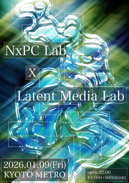 情報科学芸術大学院大学[IAMAS]のNxPC.Labと京都精華大学メディア表現学部Latent Media Lab.の共同イベントです。両者の卒業生で現場で活動するアーティストや教員、学生でDJ + VJ、パフォーマンス、空間演出、ラウンジでの展示など、総合的で多層的なパーティーを行います。