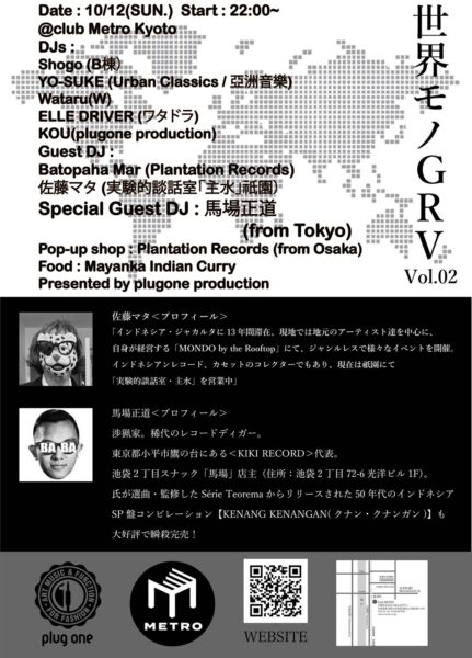 世界にはPopなモノから珍奇なモノ、GROOVYなモノ、様々なオンガクが存在します。果てしない探求の行き着く先には何が存在するのか?国も関係なく、様々な音楽をそれぞれのDJ・Diggerのフィルターを通してフロアーに音楽愛をもって提示する事を目指して...。