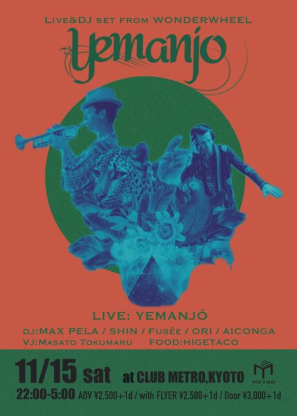 カリフォルニアのベイエリアを拠点に、トライバルビートの名手として世界各国で活躍中のYEMANJÓが、今回はトランペットやパーカッションを使った生音ダウンテンポ〜アフロハウスsetを美しい秋の京都へ響かせます。ドミニカ共和国出身でDeep House/Afro Houseを代表するTOP DJ として世界各国で活躍中のMAX PELAを筆頭とした、デジタル&オーガニックグルーヴ最先端の京都DJ勢もお見逃しなく!