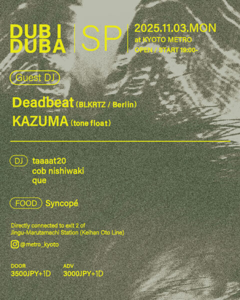 歴史と実験性が共存する京都METROにて、世界とローカルが交差するDUBの新たな共鳴を体感してほしい。