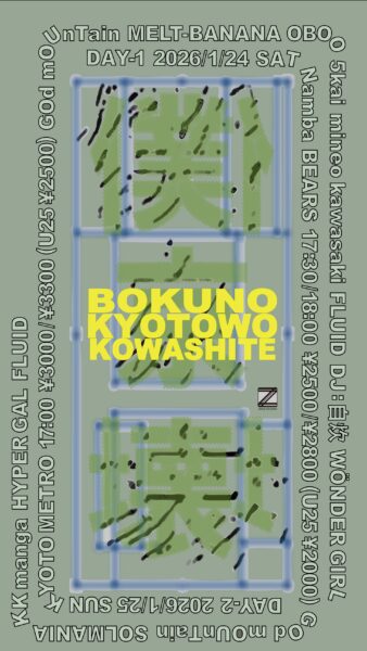 2026 年京都。ジャンルも距離も出自も超えて交差・交錯する先端音楽たち。「僕の京都を壊して」でしか体験できない、鮮烈かつ破壊的な一夜をぜひ。